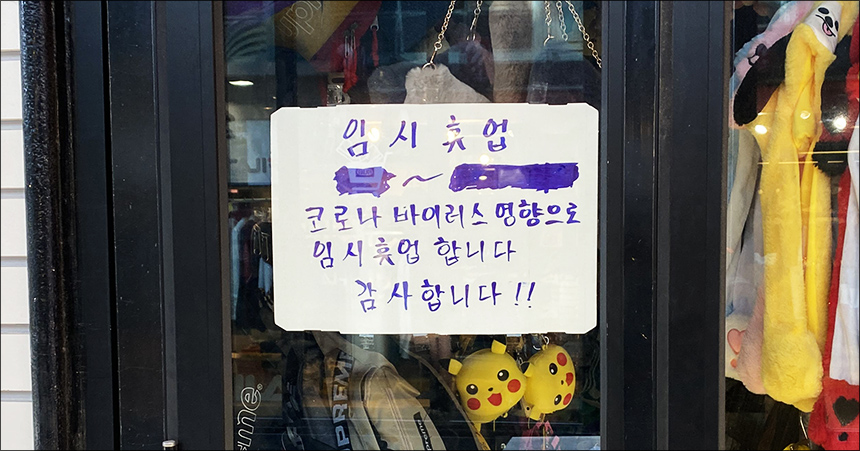 한국은 중국과 마찬가지로 최악의 코로나바이러스 발생국 중 하나로 외신에 보도되었고, 3월 15일경 신규 확진 사례의 수는 낮아지고 있음에도 코로나19가 끼친 공포는 한국 주식시장 주가를 3.43% 급락하게 했습니다. 많은 투자자들이 109조원을 공매도하여 주식 시장의 공포는 더욱 거세어졌죠. 결국 코스피는 1,771.44로 마감되었고 코스닥은 524 포인트로 끝나서 그 전날에 비해 7% 하락하였으며, 이는 금융감독위원회(Financial Supervisory Commission)가 6개월간 공매도 금지를 강제하기에 충분하였습니다. S&P 글로벌 평가등급의 우울한 전망은 한국과 일본에서의 가계 지출이 세계의 나머지 국가들과 동일하게 경제지수가 하락할 것이라는 것을 예보했기에 계속해서 경제적 공포를 더하게 했습니다. 서울 김포 공항 및 인천공항의 많은 국제 비행편이 취소되며 관광업 수입에서도 추정상 2.9조원이 증발했고 대략 2백만명에 달하는 관광객들의 예약 취소가 집계되었습니다. COVID-19의 영향이 한국에서 점점 커지면서, 문재인 대통령이 체감 경기를 언급하면서, 바이러스가 “글로벌 경제와 한국 경제에 말로 표현할 수 없는 타격을 가할 수 있습니다”라고 말하였습니다.
