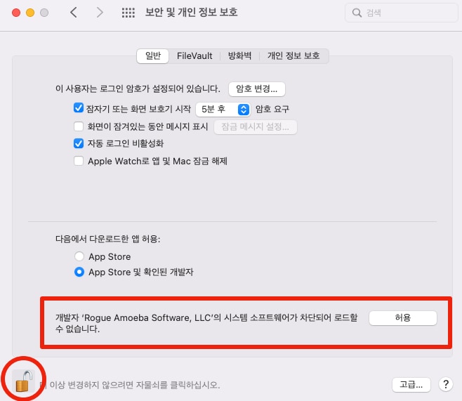 ๋งฅ์์๋ MacOS์ ๋ณด์๊ธฐ๋ฅ ๋ฐ ๊ตฌ์กฐ ๋๋ฌธ์ ์ ๋๋ก ์ฌ์ฉํ๊ธฐ ์ํด์๋ ๊ถํ ํ์ฉ ๋ฑ ์ฌ๋ฌ๊ฐ์ง ์ค์ ์ ํด์ค์ผ ํ๋๋ฐ์. ๊ฐ์ฅ ๋จผ์ ๋งฅ์์ ๋๋ ์๋ฆฌ๋ฅผ ๋ น์ํ๊ธฐ ์ํด ์ค๋์ค ํ์ฅ ํ๋ก๊ทธ๋จ์ด ์ค์น๊ฐ ๋ฉ๋๋ค. ์๊ฑธ ์์คํ ํ๊ฒฝ์ค์ > ๋ณด์ ๋ฐ ๊ฐ์ธ์ ๋ณด ๋ณดํธ์์ ์๋ฌผ์ ๋ฅผ ์ด๊ณ 'ํ์ฉ'์ ํด์ฃผ์ด์ผ ํฉ๋๋ค.