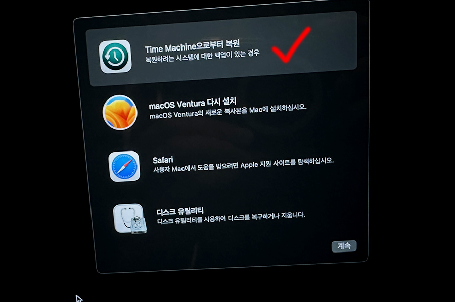 ๊ทธ๋๋ ์ค๋๋ง์ ๋งฅOS ๋ฒคํฌ๋ผ(Ventura)๋ฅผ ํ๋ฒ ์น ์ ๋ฆฌํด๋ณผ๊น ํ๋ ์๊ฐ์ด ๋ค์ด์, 1TB SSD ์คํ ๋ฆฌ์ง๋ฅผ APFS(Apple ํ์ผ ์์คํ )์ผ๋ก ํฌ๋งท์ ํ๊ณ , ์ฝ 500GB๊ฐ ๋๋ ๋งฅ๋ถ์ ๋ฐ์ดํฐ๋ฅผ ํ์๋จธ์ ์ผ๋ก ๋ฐฑ์ ํด๋ณด์์ต๋๋ค.