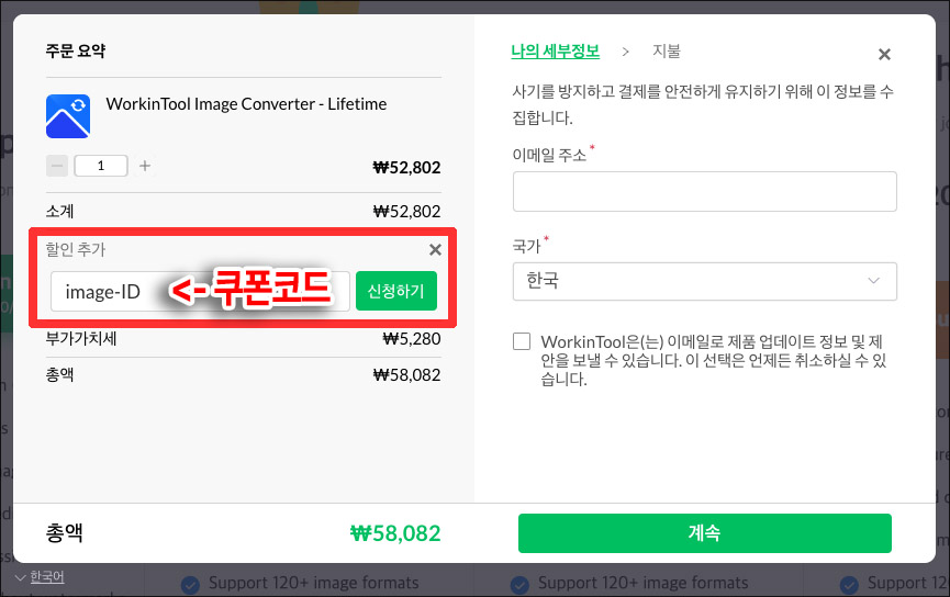 ๋ฌด๋ฃ ์ฒดํ ๋ฒ์ ์์๋ HEIC ์ด๋ฏธ์ง ํ์ผ์์ JPG ๋๋ PNG ๋ฑ์ผ๋ก ๋ณํ๋ ์ฌ์ง์ ์ํฐ๋งํฌ๊ฐ ๋ค์ด๊ฐ ์๊ณ , ๋ง์ HEIC ์ด๋ฏธ์ง ํ์ผ์ ๋ณํํ ๋ ์ ๋ฃ ๋ผ์ด์ผ์ค๊ฐ ํ์ํ๋ค๊ณ ์๋ด๊ฐ ๋จ๊ณ ์์ผ๋, ํด๋น ๊ธฐ๋ฅ์ ์์ฃผ ์ฌ์ฉํ๋ค๋ฉด WorkinTool Image Converter ๋ผ์ด์ผ์ค๋ฅผ ๊ตฌ์ ํด์ ์ฌ์ฉํด๋ณด๋ ๊ฒ๋ ์ข์ ๊ฒ ๊ฐ์ต๋๋ค.