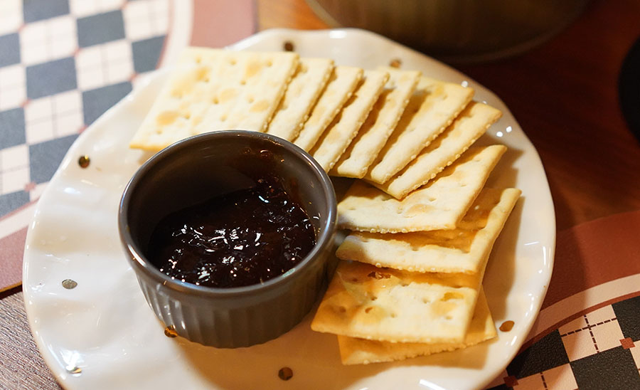 요건 기본으로 제공되는 안주 인듯 합니다. 수제 잼과 크랙커 비스킷이 제공 됩니다. 배를 채우러 간 것이 아니라 술을 마시러 간 거라면 좋아라 할만한 그런 간식이죠.